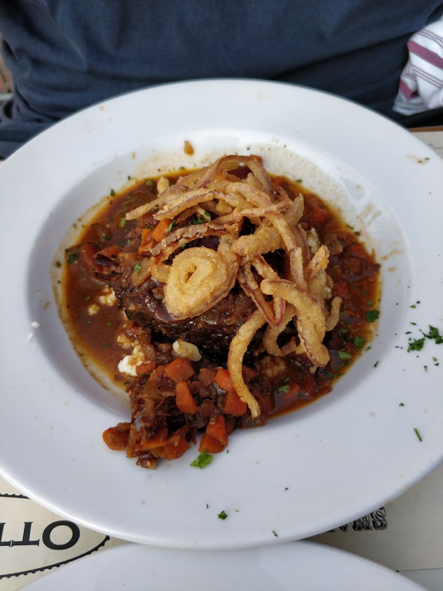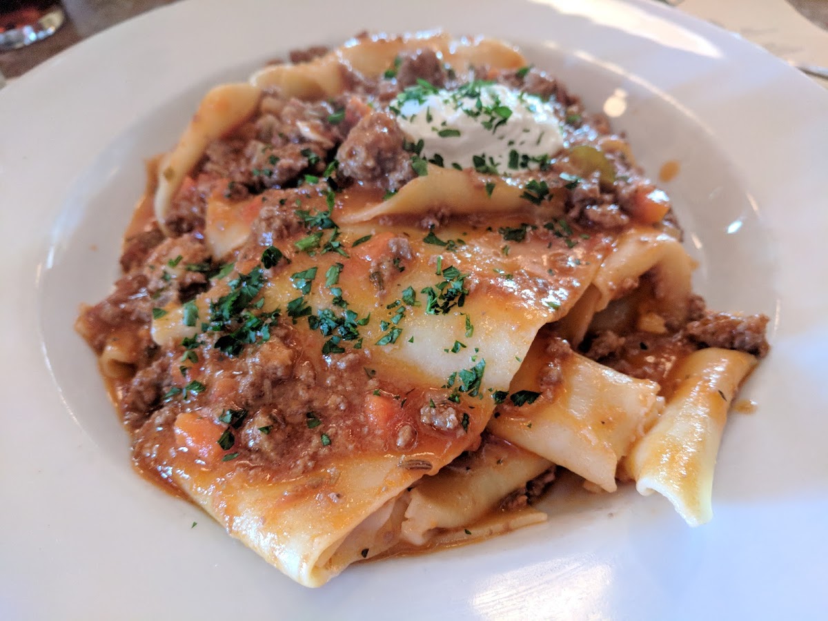 Our first time here, we will definitely come back. We had the roasted garlic and goat cheese small plate as an appetizer. My wife had the Bolognese and the handmade noodles just melt in your mouth. I had the bisteca and patate which was done properly, tasty chimichurri, but the steak was a little tough. Our server, Lauren, was the best. Enthusiastic about the menu, attentive, and very friendly.